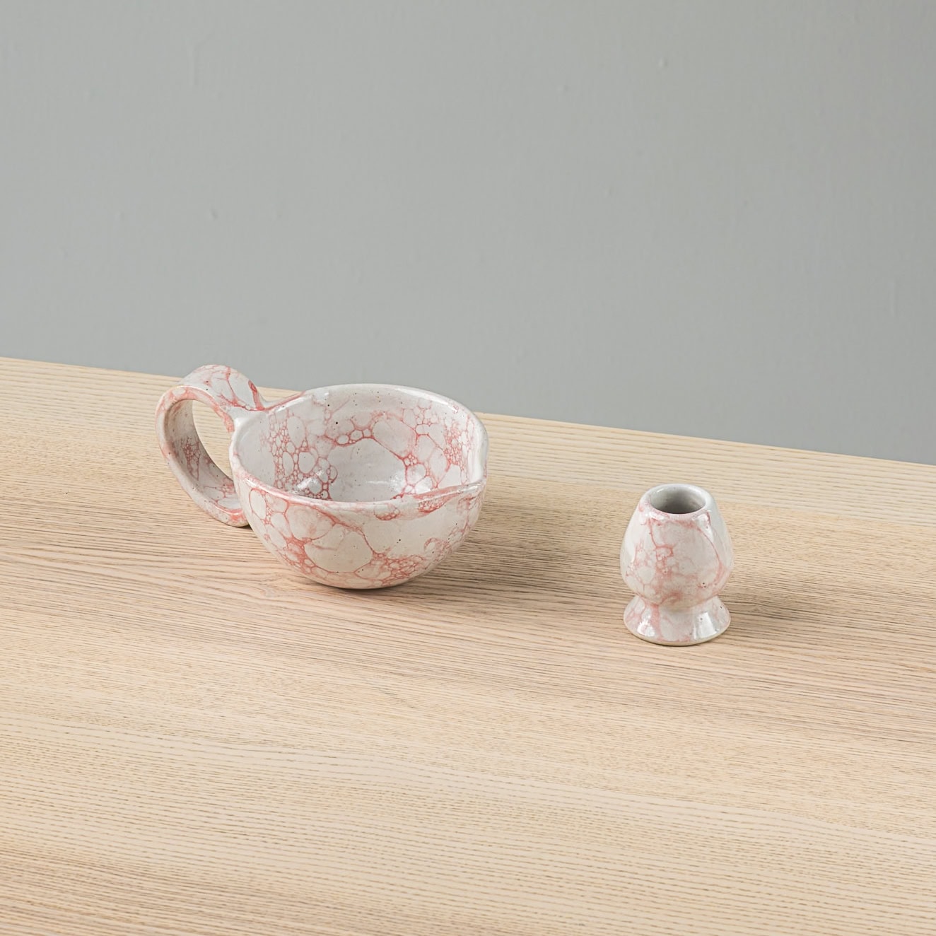 Set Matcha con Agarradera-Blanco Burbuja Rosa