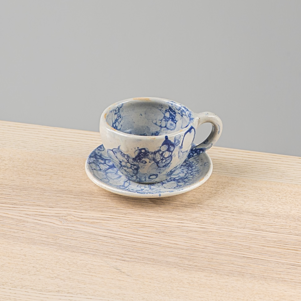 Taza Blanco Burbuja Azul + Platito